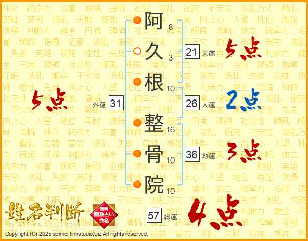 阿(8画)久(3画)根(10画) 整(16画)骨(10画)院(10画)