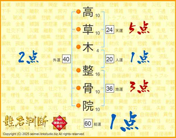 高(10画)草(10画)木(4画) 整(16画)骨(10画)院(10画)