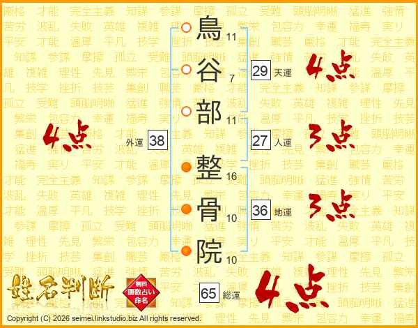 鳥谷部整骨院さんの総運は65画の4点!