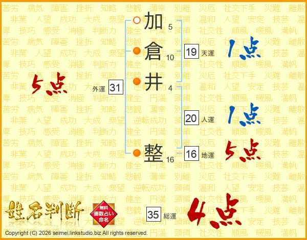 加倉井整さんの総運は35画の4点!
