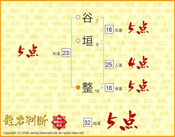 谷垣整さんの総運は32画の5点!