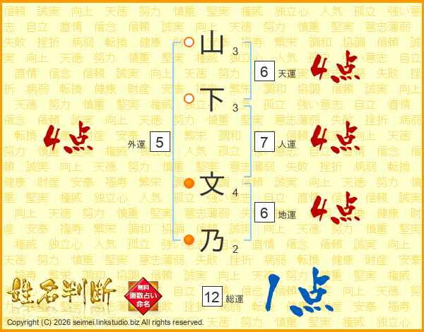 山下文乃さんの総運は12画の1点!