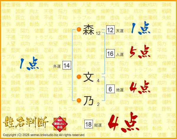 森文乃さんの総運は18画の4点!