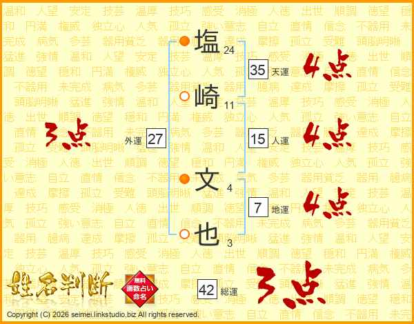 塩崎文也さんの天運は35画の4点!