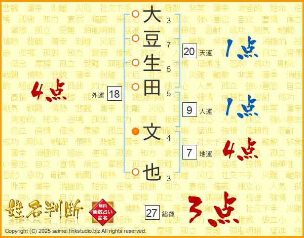 大(3画)豆(7画)生(5画)田(5画) 文(4画)也(3画)