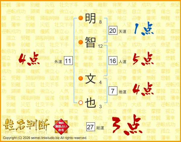 明智文也さんの総運は27画の3点!