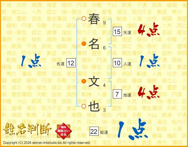 春名文也さんの天運は15画の4点!