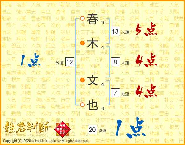 春木文也さんの天運は13画の5点!