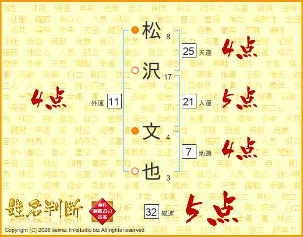 松沢文也さんの総運は32画の5点!