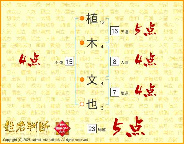 植木文也さんの総運は23画の5点!