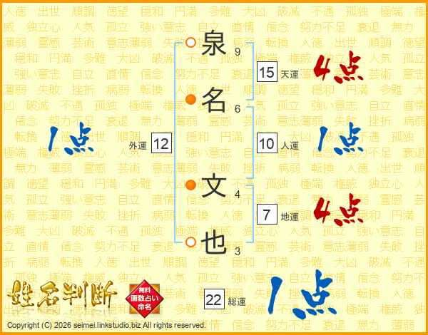 泉名文也さんの総運は22画の1点!
