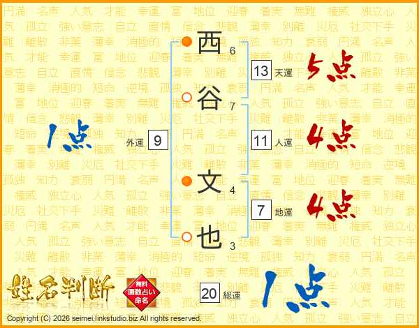 西谷文也さんの天運は13画の5点!