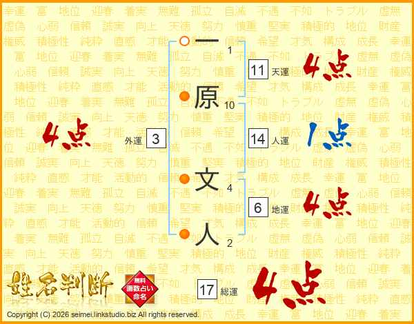 一原文人さんの総運は17画の4点!
