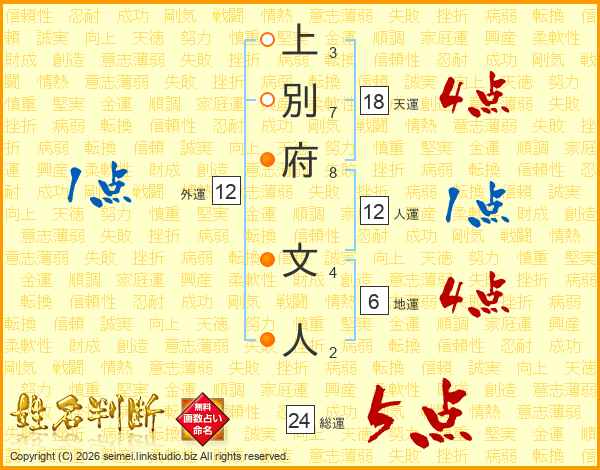 上別府文人さんの総運は24画の5点!