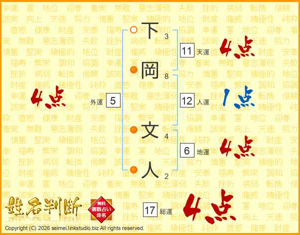 下岡文人さんの総運は17画の4点!