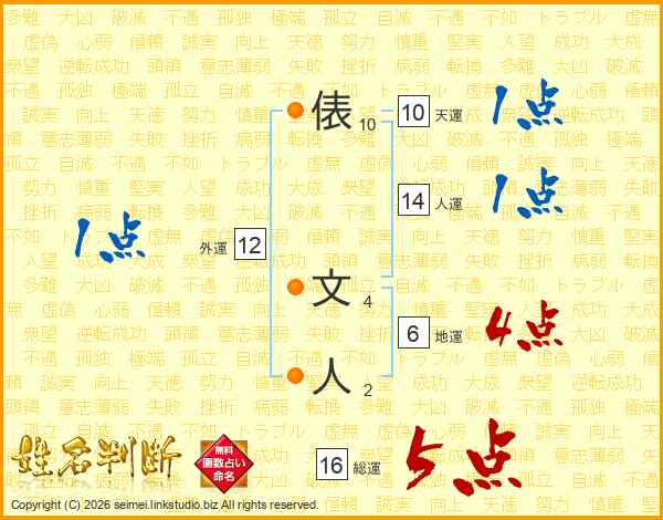 俵文人さんの人運は14画の1点!