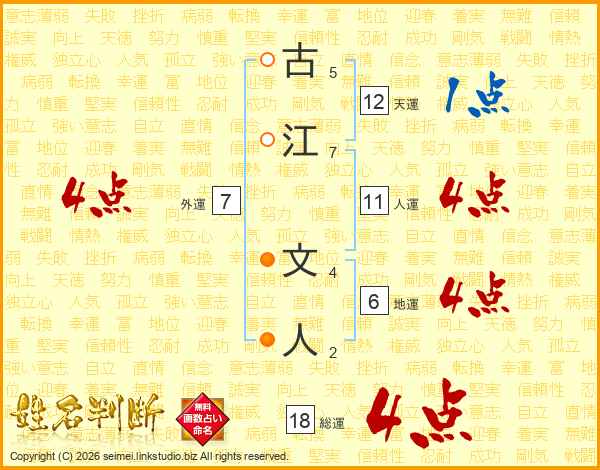 古江文人さんの総運は18画の4点!