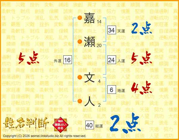 嘉瀬文人さんの総運は40画の2点!
