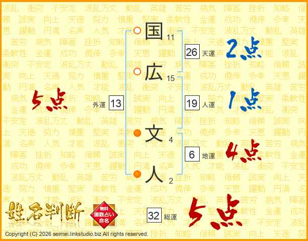 国広文人さんの総運は32画の5点!