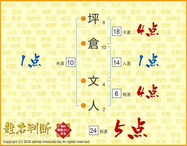 坪倉文人さんの天運は18画の4点!