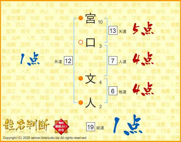 宮口文人さんの総運は19画の1点!