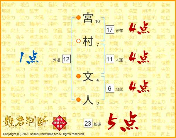 宮村文人さんの人運は11画の4点!