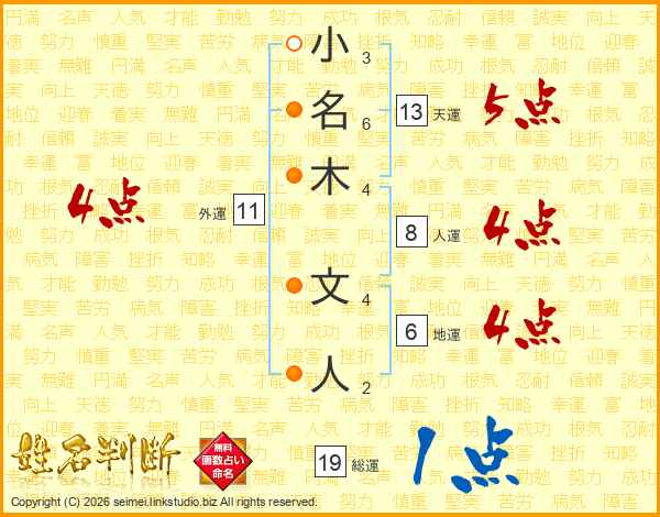 小名木文人さんの総運は19画の1点!