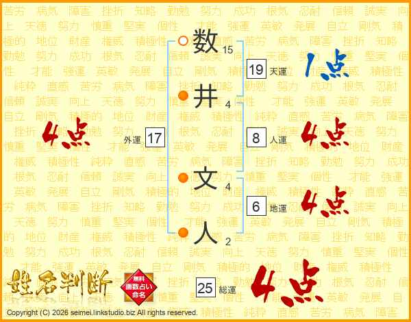 数井文人さんの総運は25画の4点!
