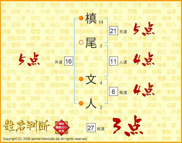 槙尾文人さんの人運は11画の4点!
