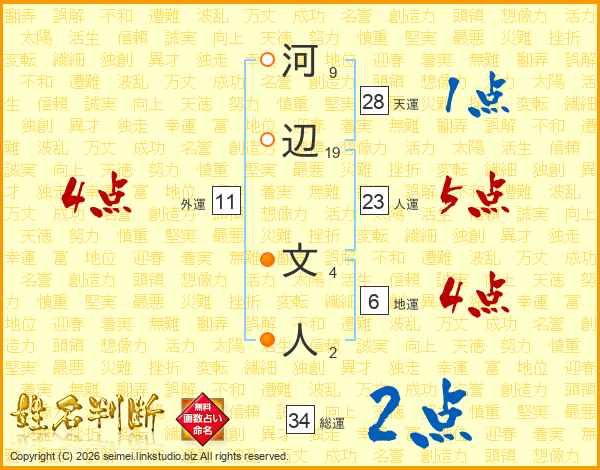 河辺文人さんの人運は23画の5点!