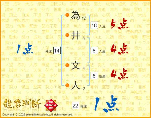 為井文人さんの天運は16画の5点!