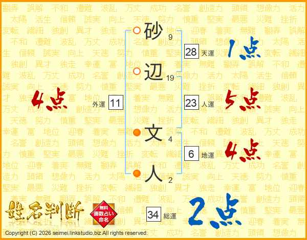 砂辺文人さんの総運は34画の2点!