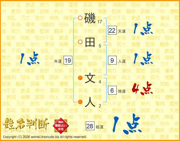 磯田文人さんの天運は22画の1点!