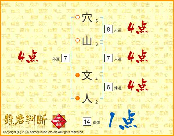 穴山文人さんの総運は14画の1点!