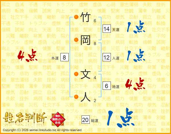 竹岡文人さんの天運は14画の1点!