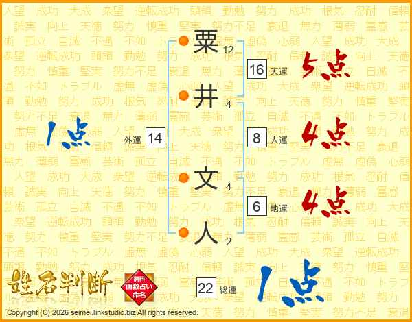 粟井文人さんの総運は22画の1点!