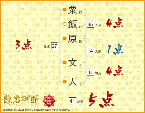 粟飯原文人さんの総運は41画の5点!
