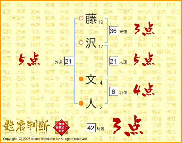 藤沢文人さんの人運は21画の5点!
