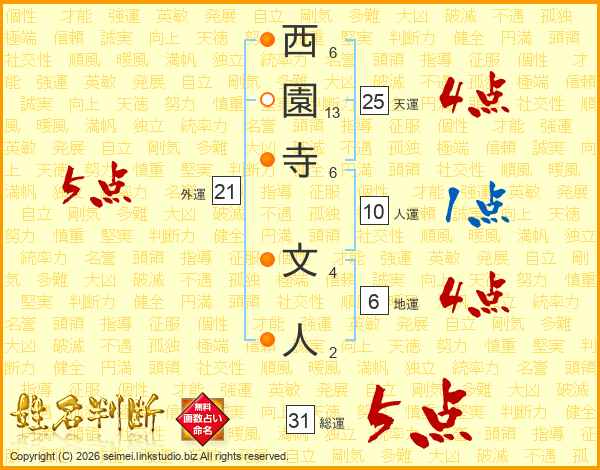 西園寺文人さんの総運は31画の5点!
