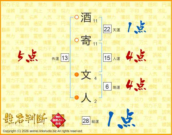 酒寄文人さんの外運は13画の5点!