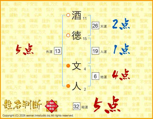 酒徳文人さんの総運は32画の5点!