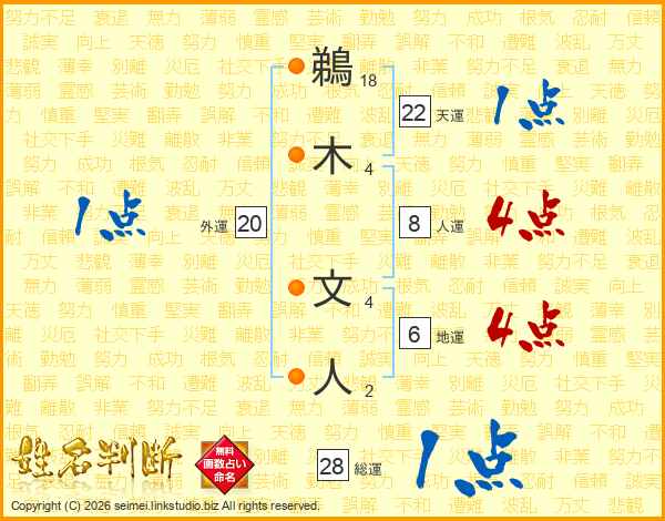 鵜木文人さんの天運は22画の1点!