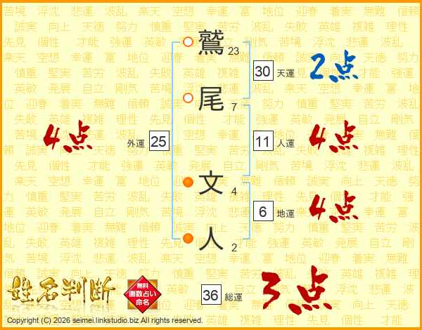 鷲尾文人さんの人運は11画の4点!
