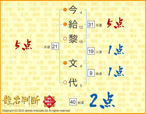 今給黎文代さんの天運は31画の5点!