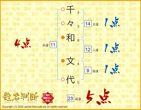 千(3画)々(3画)和(8画) 文(4画)代(5画)