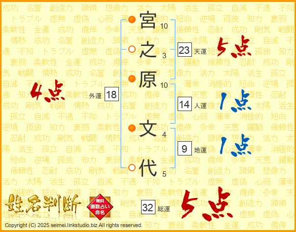 宮(10画)之(3画)原(10画) 文(4画)代(5画)