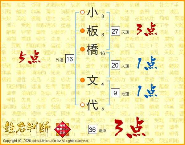 小板橋文代さんの総運は36画の3点!