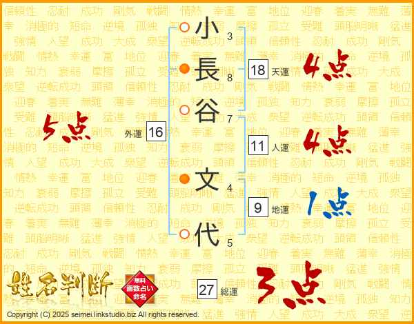 小(3画)長(8画)谷(7画) 文(4画)代(5画)