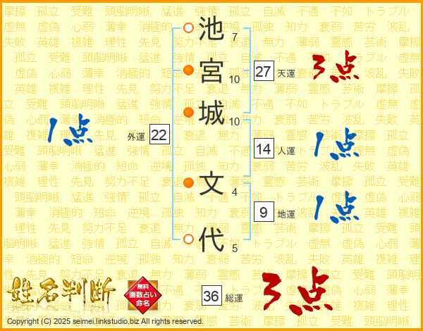 池宮城文代さんの総運は36画の3点!
