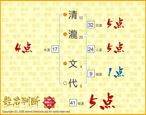 清瀧文代さんの総運は41画の5点!